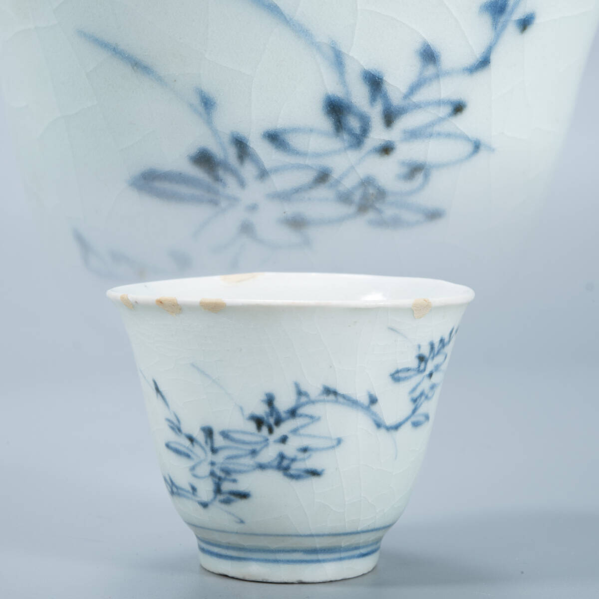 - BR2771-中国美術 染付 青華 花卉文煎茶碗・唐物・煎茶道具 径7cm高5.4cm