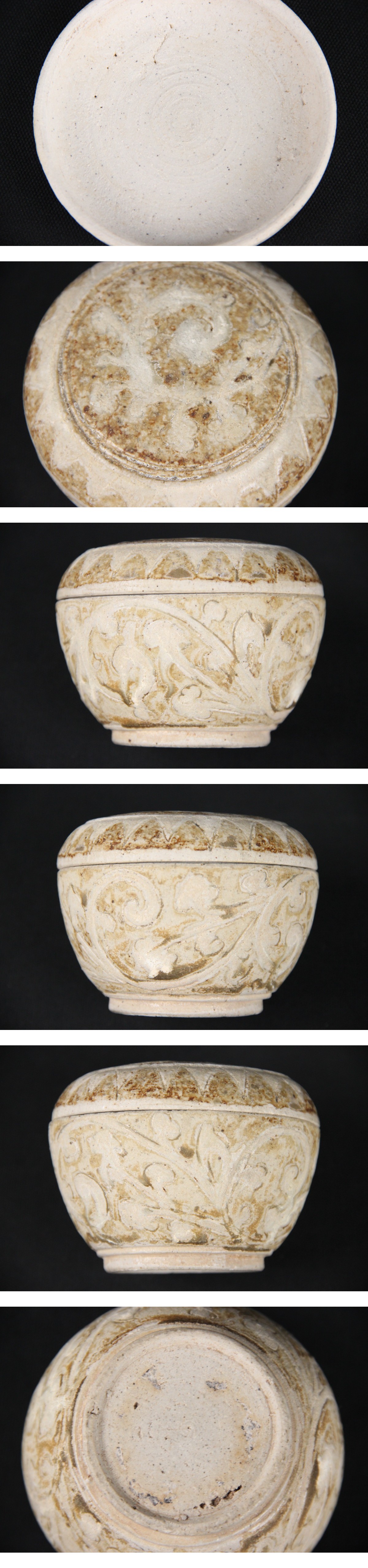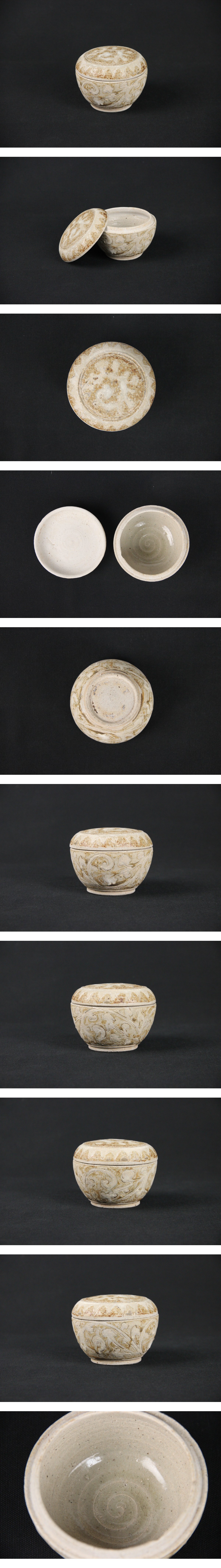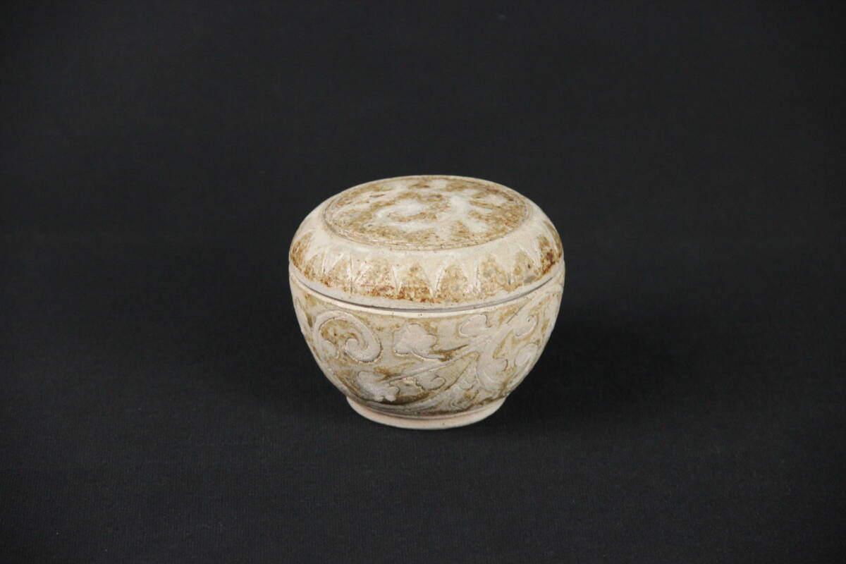 - 中国古陶磁 宋代 磁州窯 白地褐彩 刻花蓋盒 粉盒 唐物 時代物 ES29-2