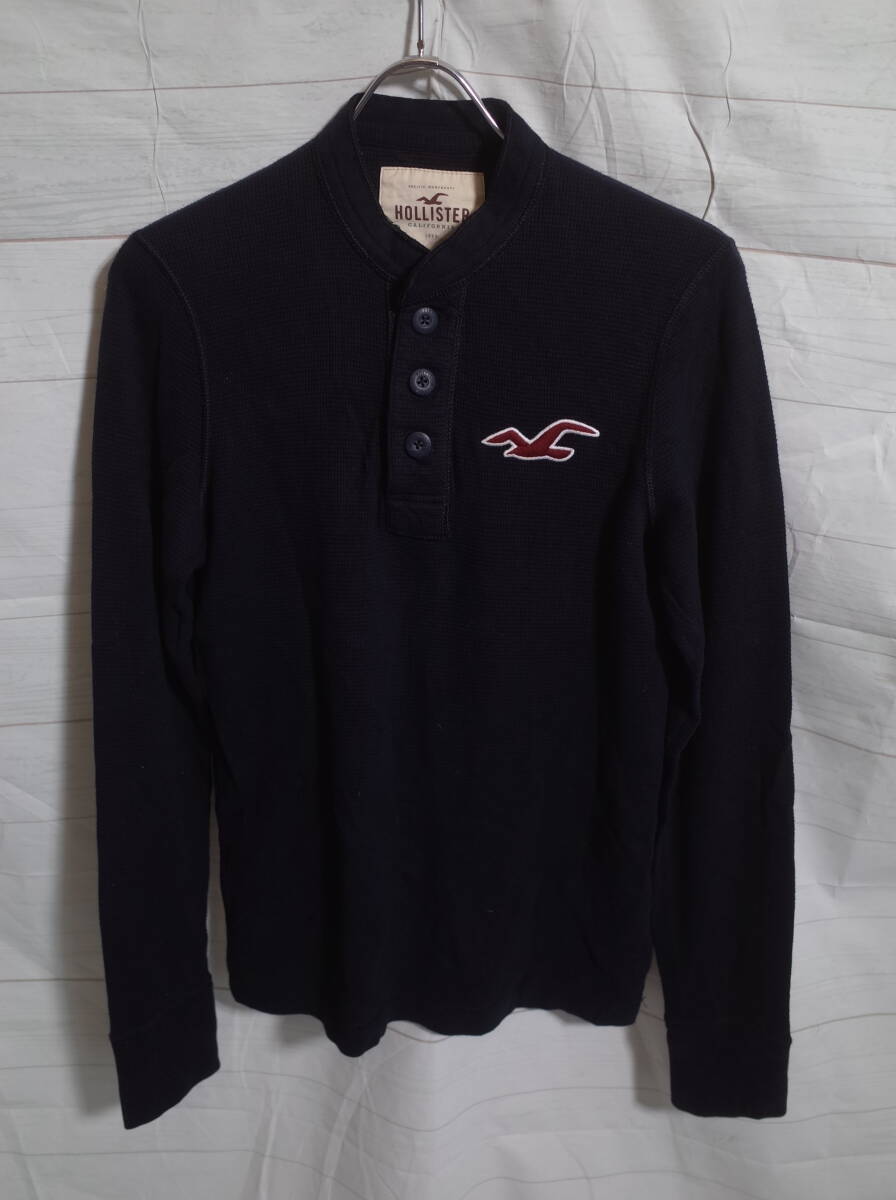 - メンズ pn43 HOLLISTER ホリスター ヘンリーネック 長袖 サーマル Tシャツ M ブラック 黒 コットン ネコポス可