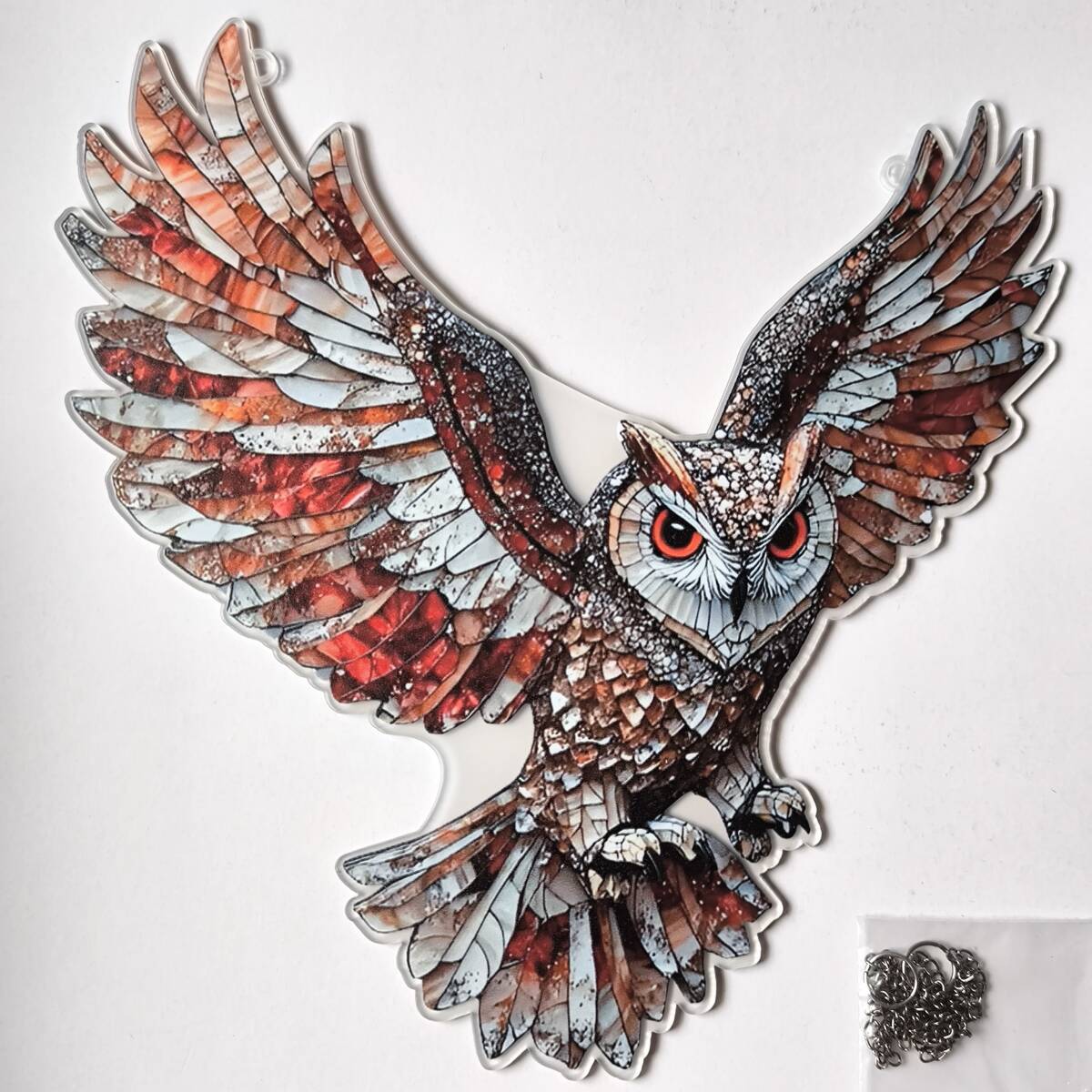 - 【羽ばたくフクロウ】アクリルプレート 飾り サンキャッチャー チェーン付き オブジェ お洒落 壁や窓辺の飾りに◎◎