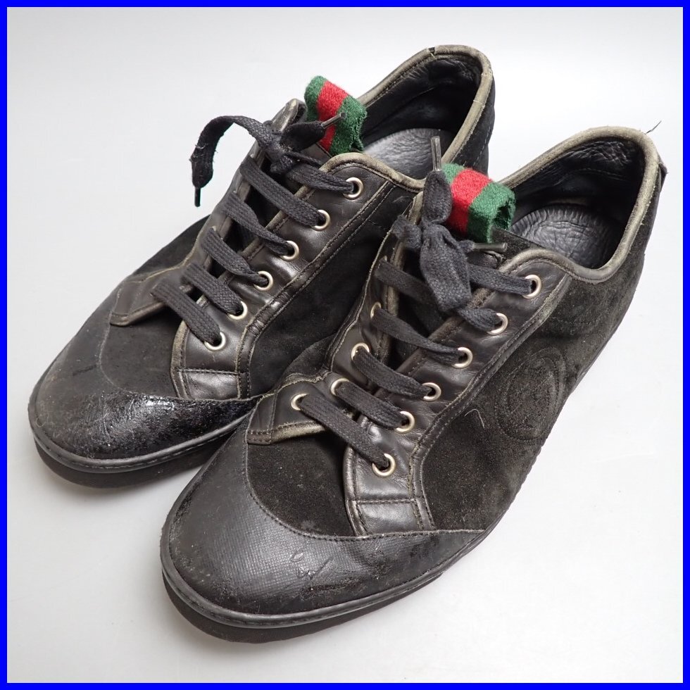 > ★GUCCI/グッチ スエード ローカットスニーカー 42E/メンズ27.0cm相当/ブラック/シェリーライン/114488/若干難あり&1577906730