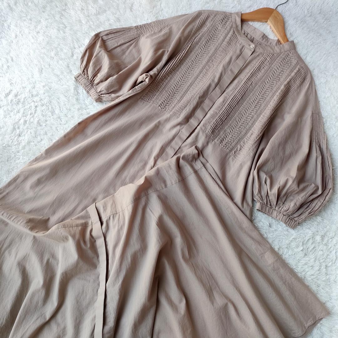 > ユナイテッドアローズ グリーンレーベルリラクシング INDIA ピンタック ワンピース ベージュ F インド製 マキシ丈 前開き コットン100%