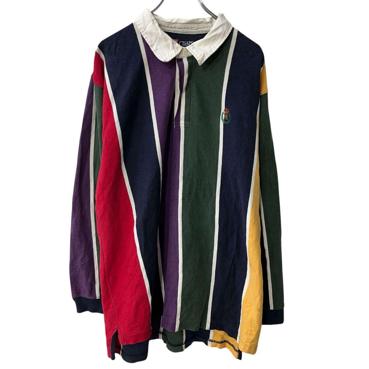 - a710-5201CHAPS 長袖 ポロシャツ 2XL ネイビー マルチカラー チャップス ストライプ 刺繍ロゴ コットン ビッグサイズ ラガーシャツ 秋物