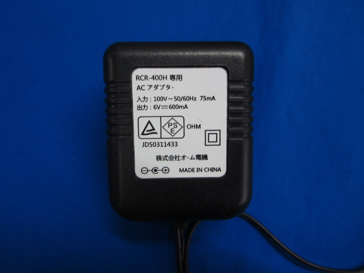 - HAD-23■オーム ACアダプタ RCR-400H 専用 6V 600mA 動作保証