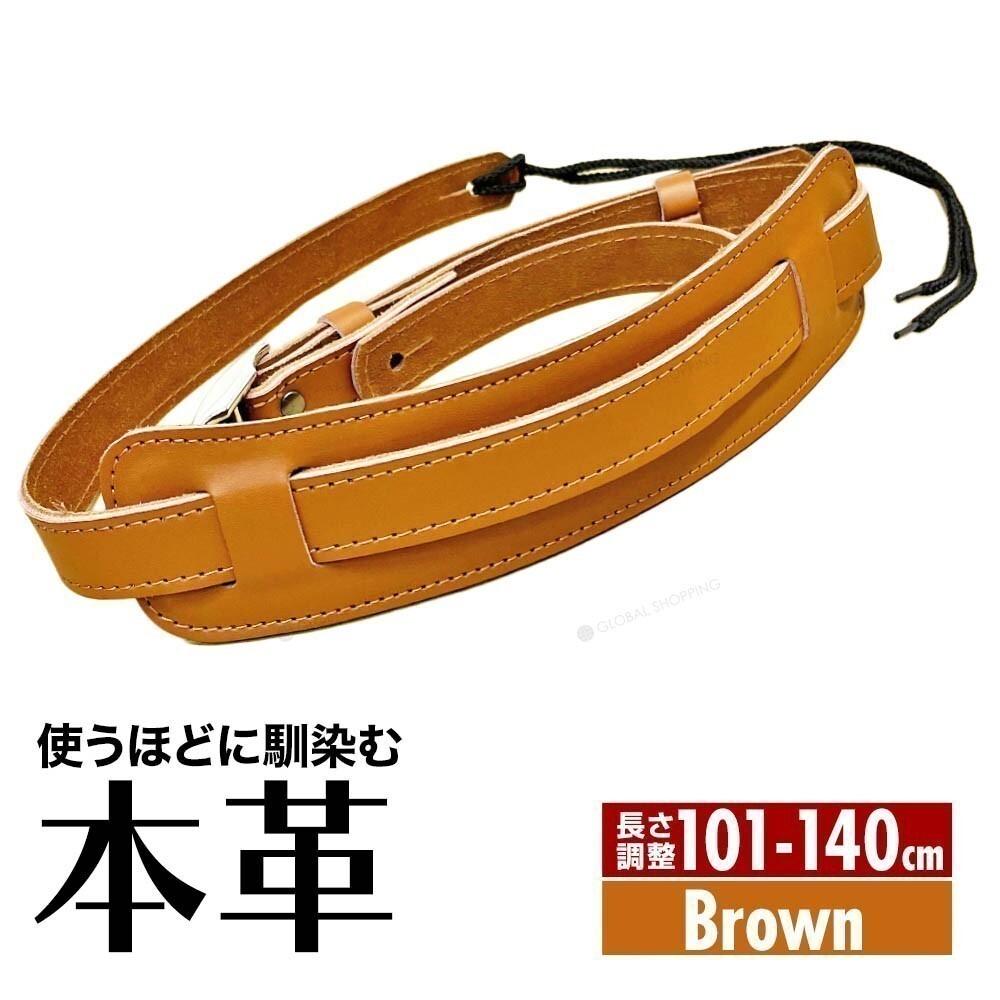 - ギター ストラップ 本革 牛革 レザー 111cm-150cm 長さ調整可能 5.8cm幅 ショルダーパッド ベース エレキ アクセサリ 楽器 演奏 ブラウン