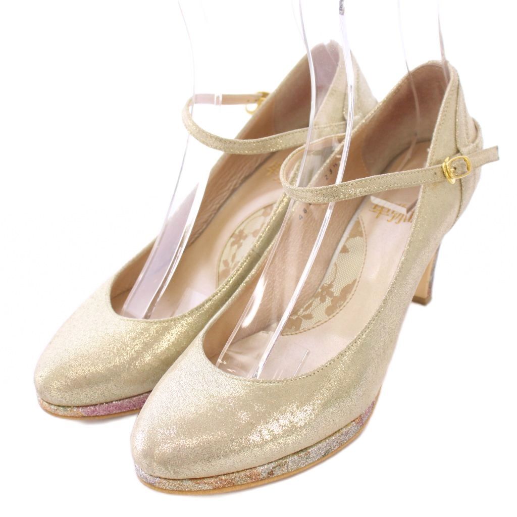 - ヒミコ 卑弥呼 ストラップパンプス アンクル ラウンドトゥ チャンキーヒール 23.5cm ゴールドカラー /BB レディース