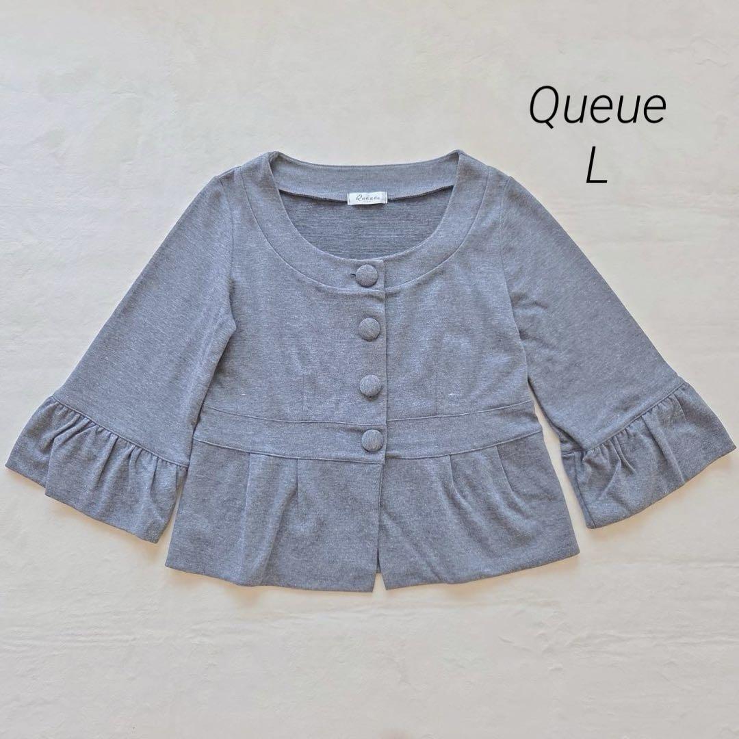 - Queue スウェットカーディガン M-L フロントボタン フレアスリーブ