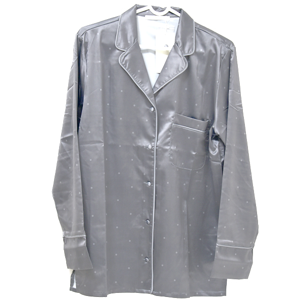 - 新品 Ray Cassin サテン ドット オープンカラー 水玉 グレー 未使用 レディース 開襟 シャツ ルームウェア レイカズン 部屋着 パジャマ