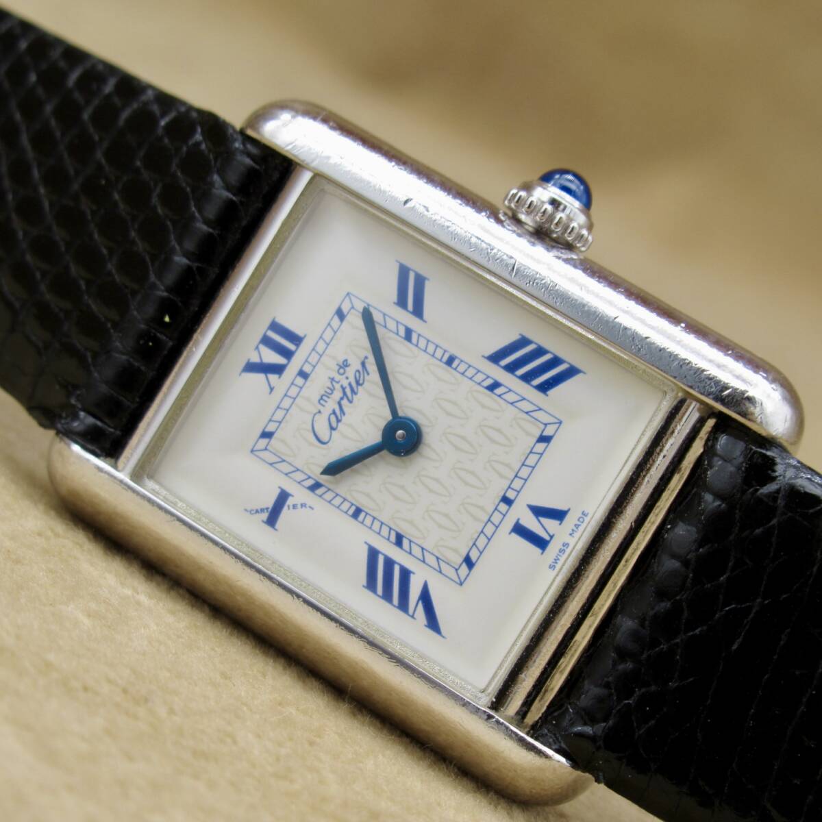 > Cartier カルティエ W1014054 マストタンク MM 925 飛びローマン ホワイト ブルー レクタン QZ クォーツ クオーツ レザー