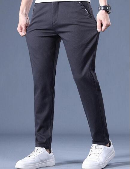 > メンズ スラックス ビジネスパンツ ストレッチ スリム チノパン イージーパンツ 涼しい 通気 快適 グレー W31~W38サイズ選択可