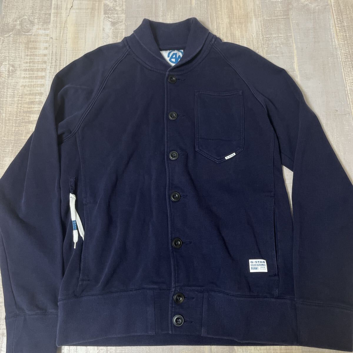 - G-STAR RAW ORGANIC ショールカラー スウェット ジャケット ブルゾン シャツ カバーオール ジースターロウ オーガニック L ネイビー メンズ