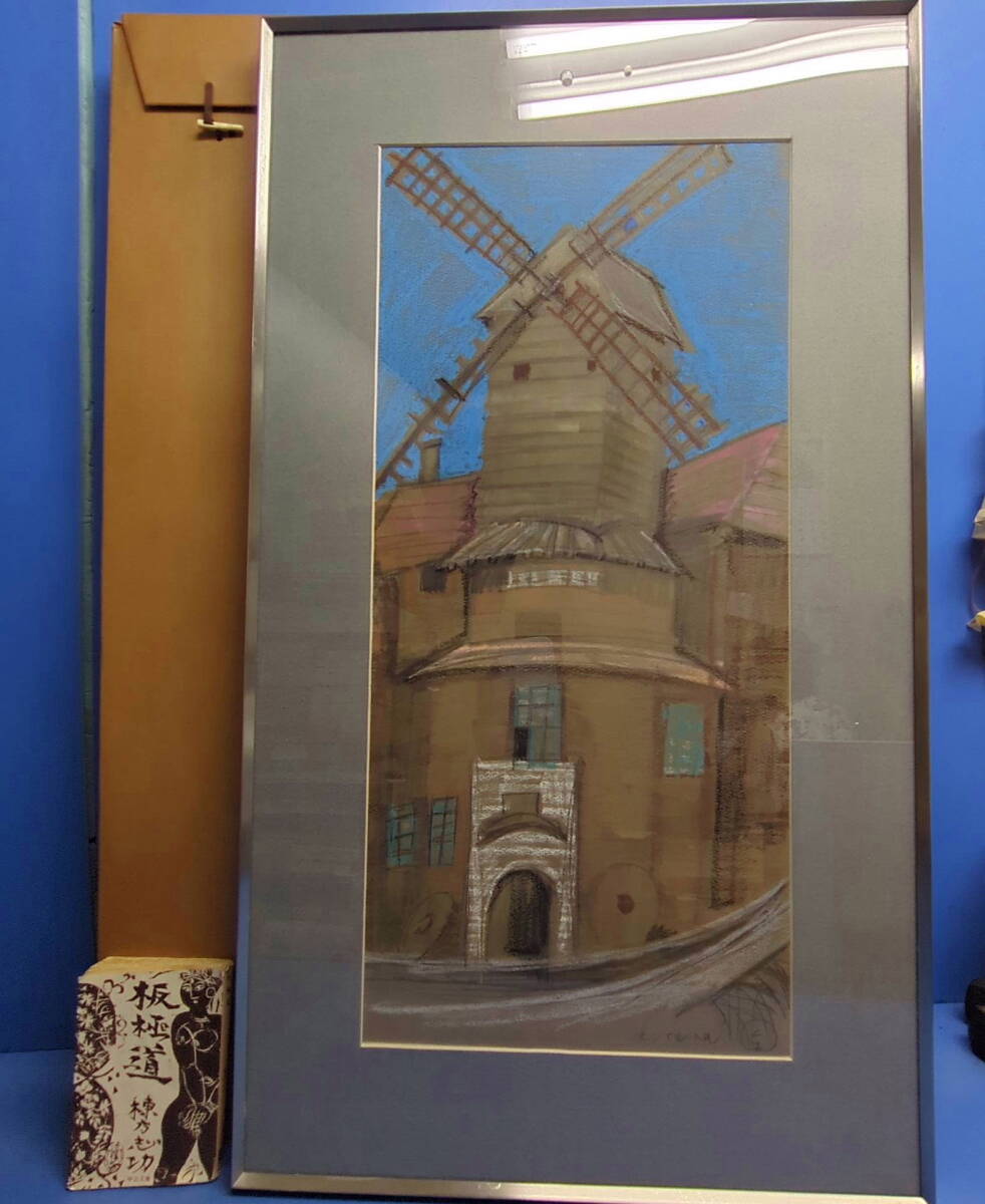 - kankando 濱田台兒パステル画『モンマルトルの風車』サイン,共シール 額装《真作》