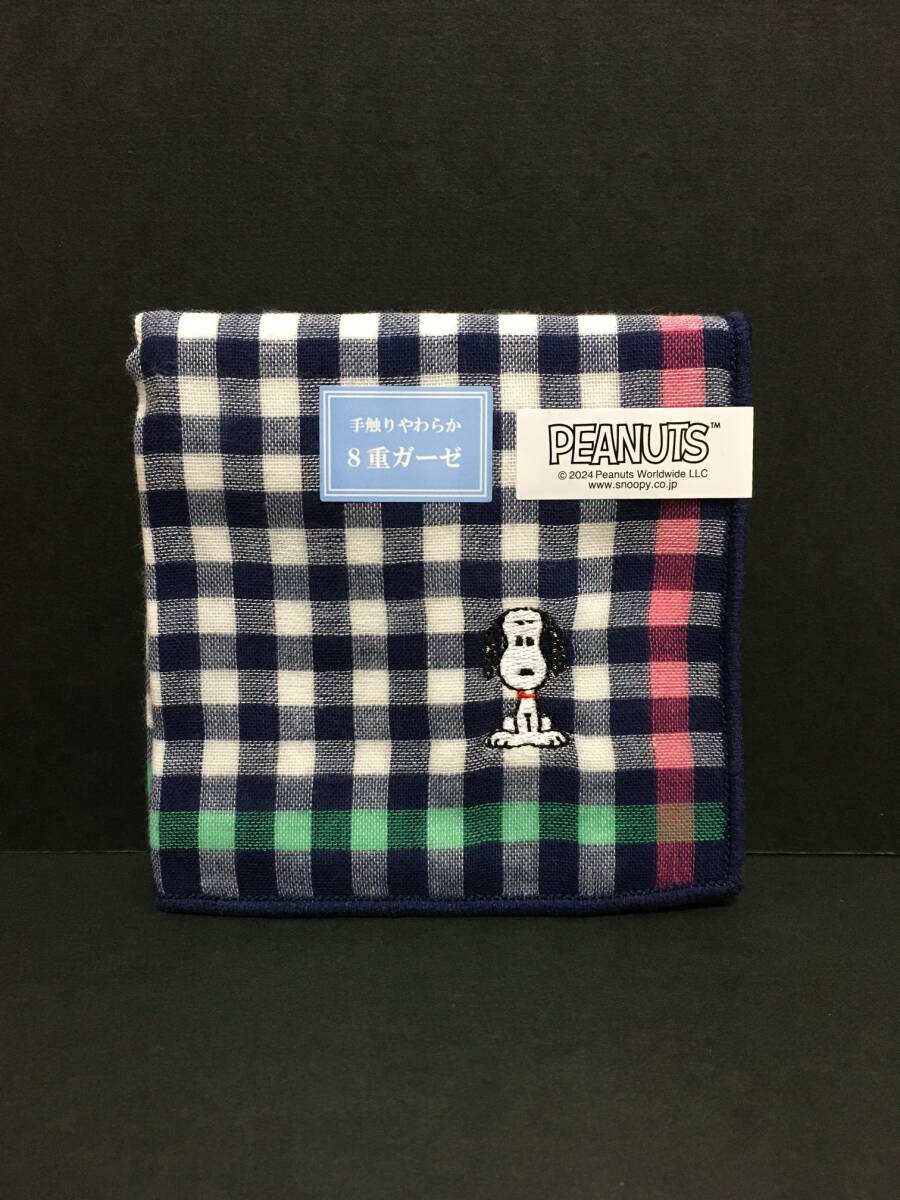 - PEANUTS★スヌーピー 8重ガーゼハンカチ☆彡 ギンガムチェック ネイビー☆ タオルハンカチ 新品 SNOOPY