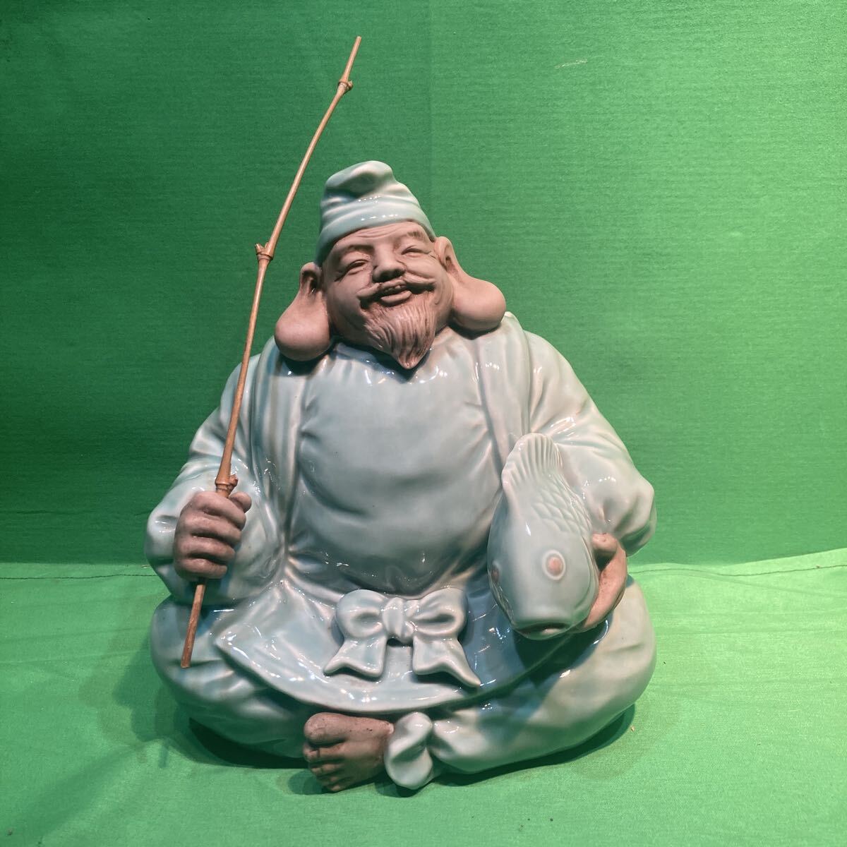 - 七福神 恵比寿様 仙人 仏像 置物 オブジェ 縁起物 陶器 アンティーク 骨董 古美術 高さ23㎝位 商売繁盛 家内安全 中古品