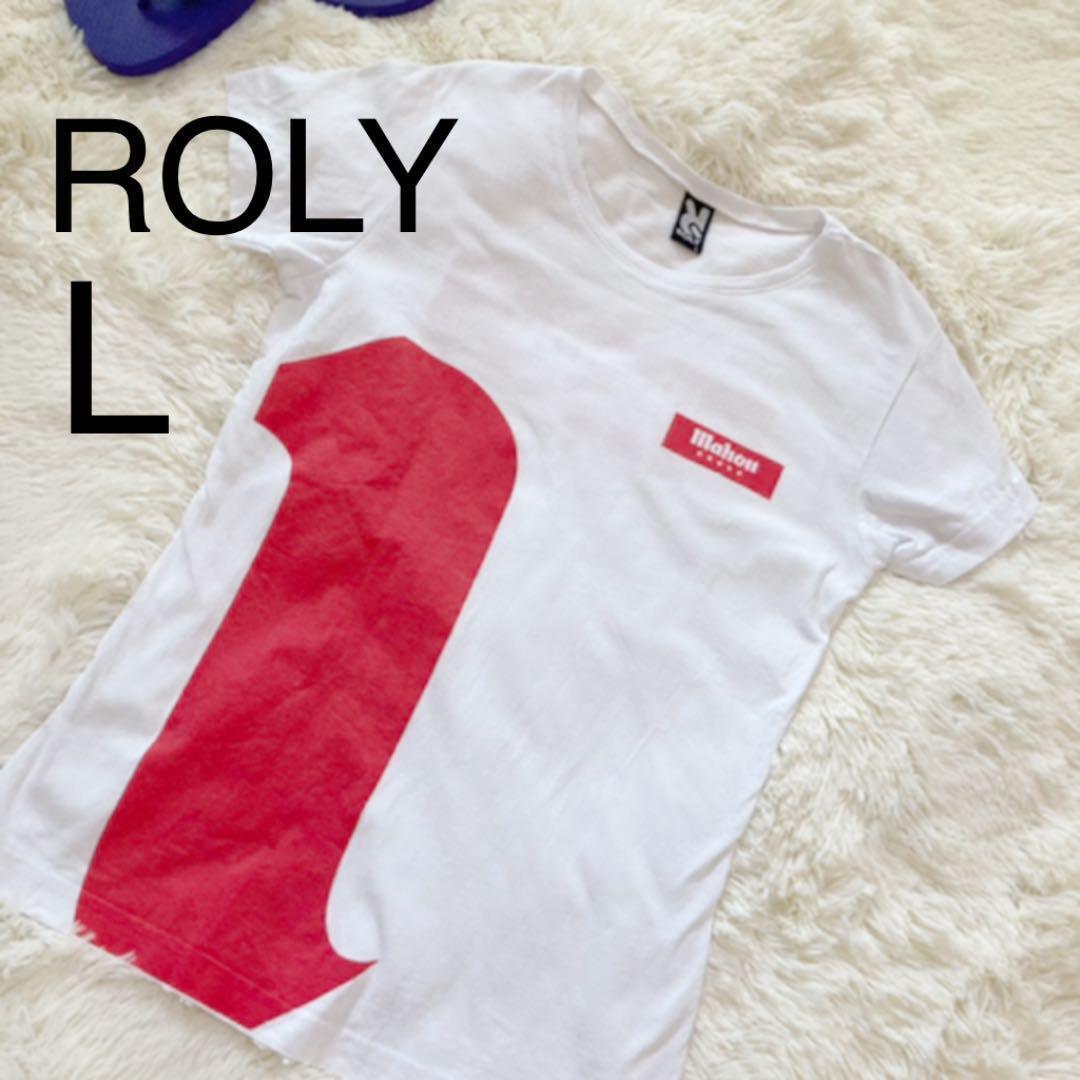 > 【美品】ロリー カットソー 半袖丸首 プリント 可愛いオールシーズン Tシャツ Y2K ホワイト L