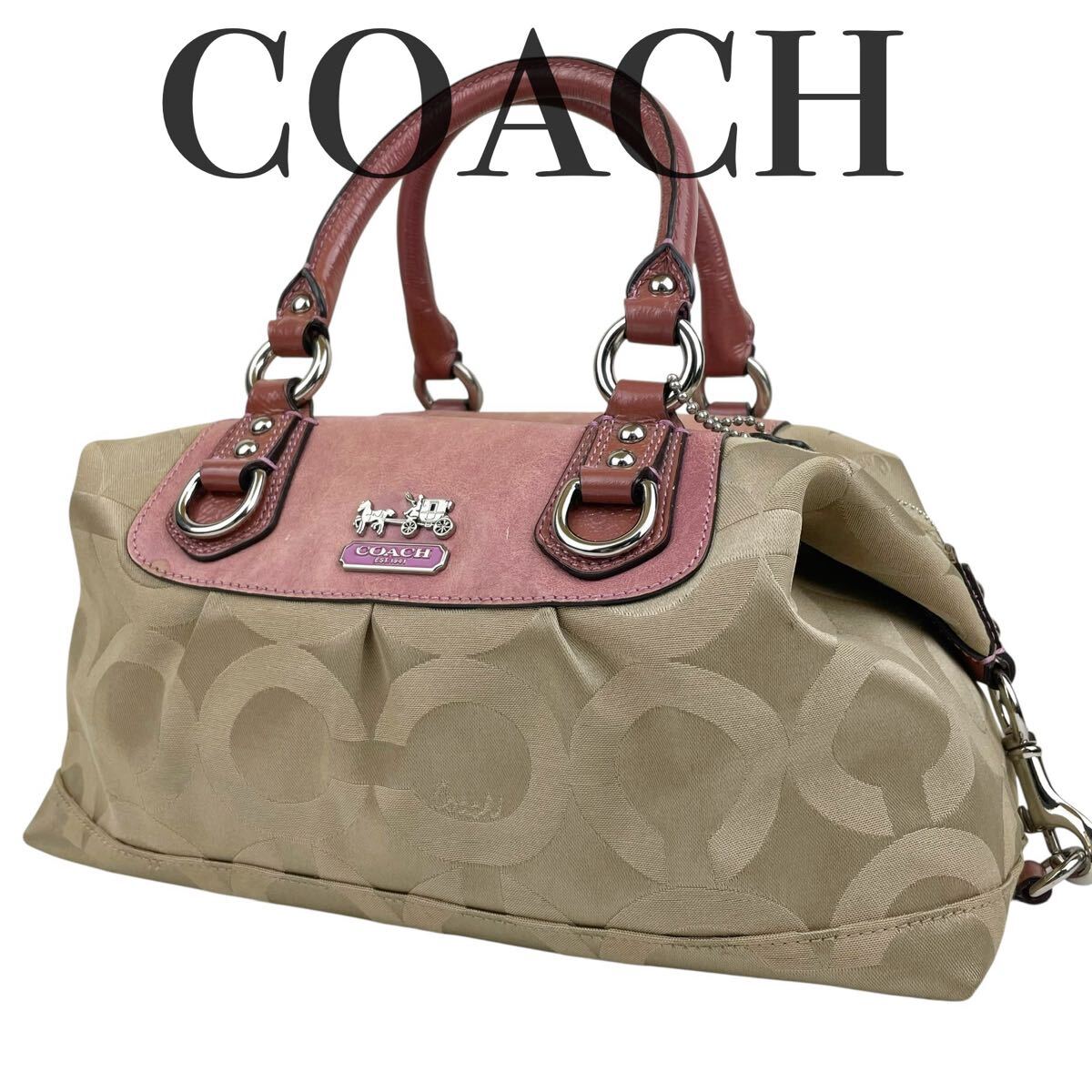- COACH コーチ ハンドバッグ マディソン オプアート ベージュ 12947 トートバッグ ショルダーバッグ 手提げ シグネチャー ピンク