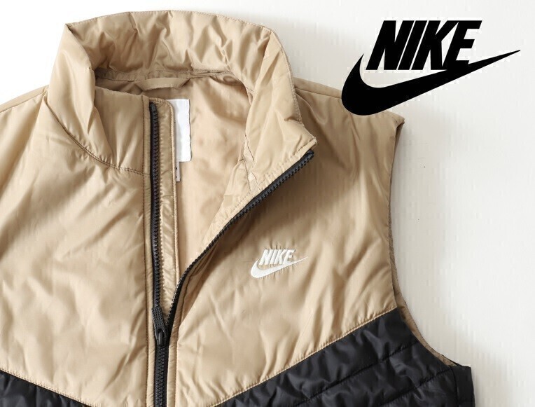 > ★未使用 NIKE ナイキ★THERMA-FIT バイカラー中綿ベストM【MLM-3C-AD26】ベージュ薄茶ブラック黒【本物保証】ラウンドベスト 軽量防寒防風