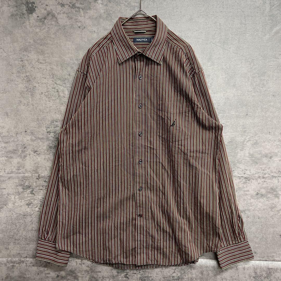 - ノーティカ マルチストライプ 長袖シャツ M 古着 ヴィンテージ風【5995】
