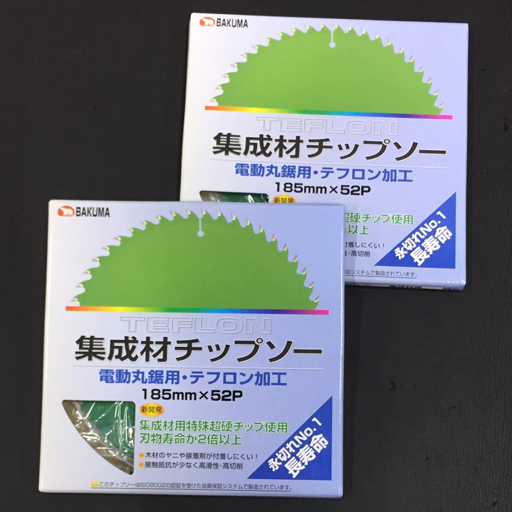 > バクマ 電動丸鋸用 テフロン加工 集成材 チップソー 185mm×52P 刃厚1.6mm 紙ケース付き 計2点 セット 現状品