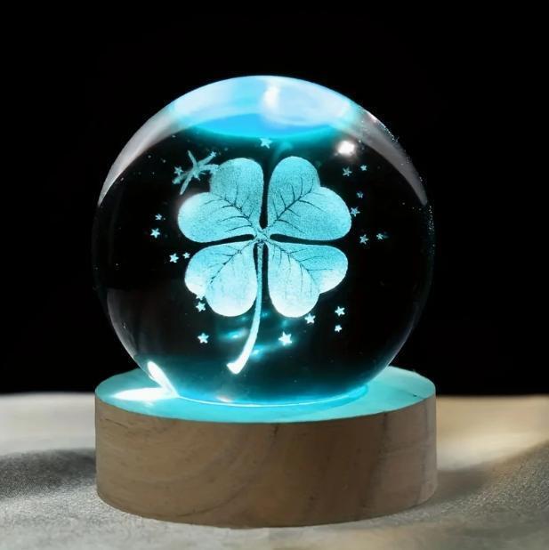 - LED クローバー 光る置物 クリスタルボール ナイトライト ガラス玉 USB 卓上 インテリア おしゃれ 癒し 雰囲気作り リビング 寝室 誕生日
