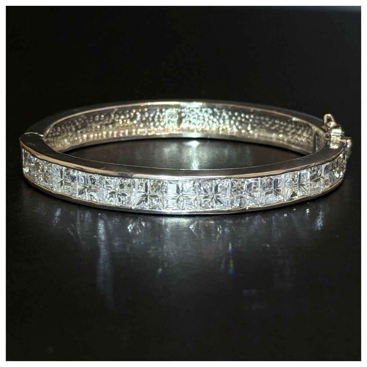 > シルバー925 スターリング sterling ハーフエタニティ バングル バケット ジルコニア ブレスレット