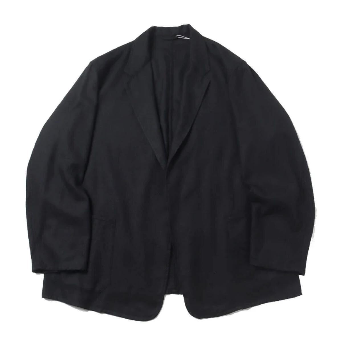 - 新品未使用 タグ付き <COMOLI>カシミヤシルク 製品染ジャケット Size1 NAVY コモリ テーラード ボタンレス 日本製 羽織