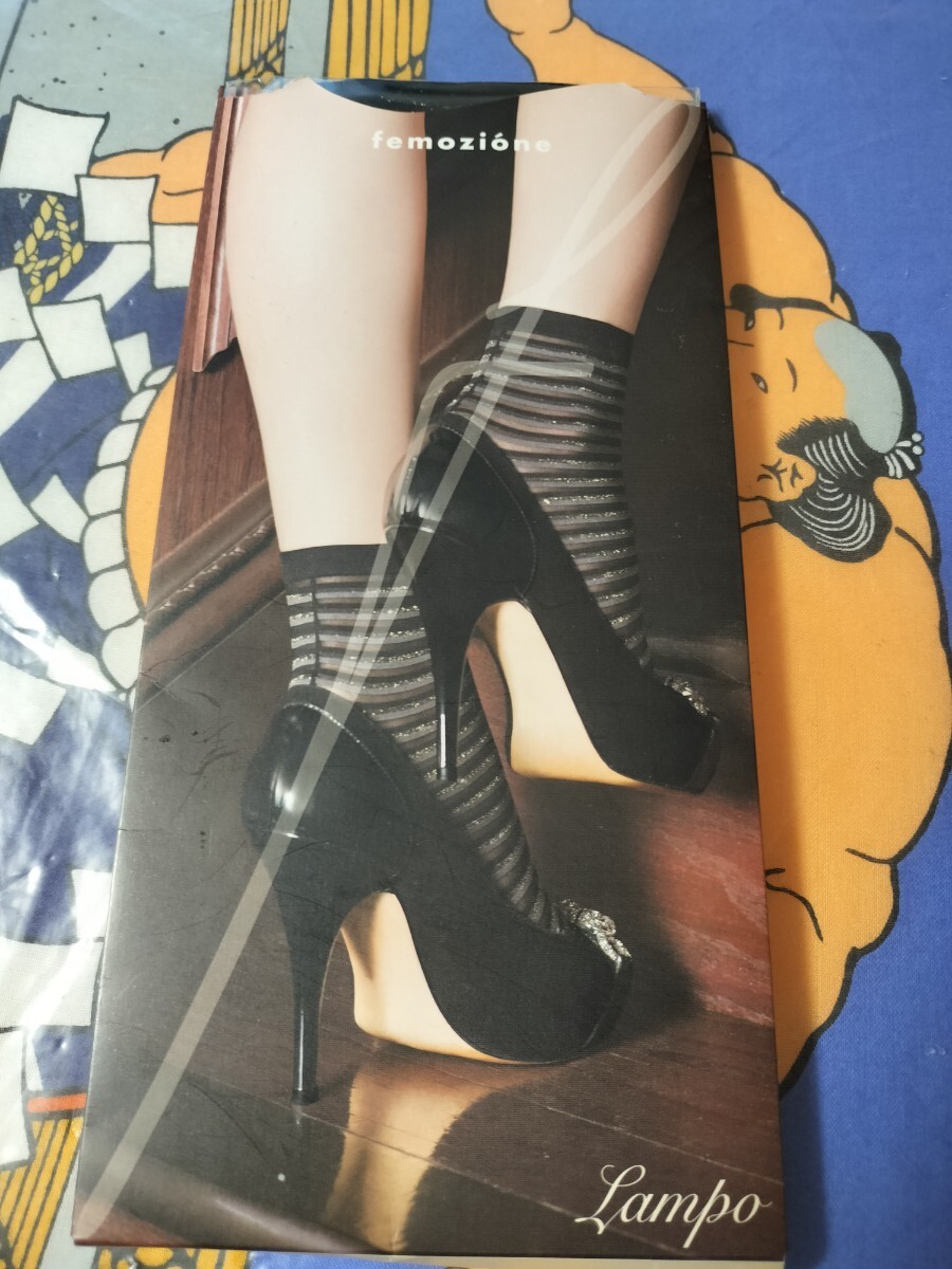 > パッケージ破れ fukuske femozione collection line socks ランポ ブラック 靴下 福助 ソックス 高級 柄 デザイン 23-25cm