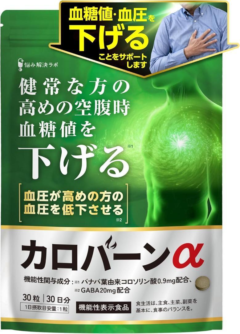 - 30日分【高めの 血糖値 血圧 をWサポート】カロバーンα 機能性表示食品 バナバ葉 GABA 業界屈指13種のサポート成分贅沢配合 946