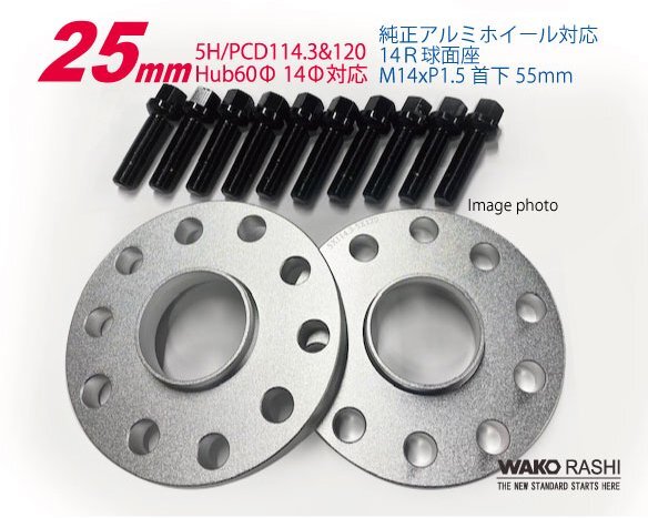 > クラウン(SH35系) 25mmスペーサー(5H/114.3 60Φ)とロングボルト(14R 首下55mm)10本のセット /和広 WAKO