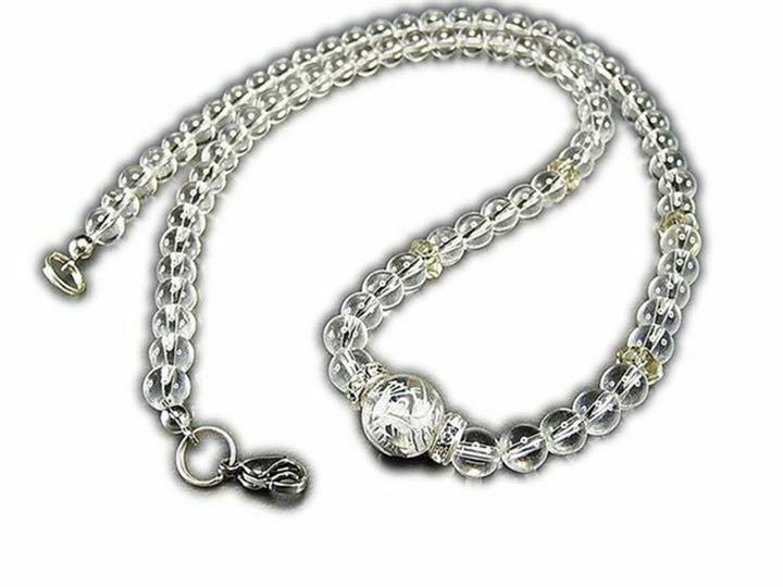 - 開運天然石昇龍本水晶手彫り銀箔水晶ネックレス全長約60cm石街プライム