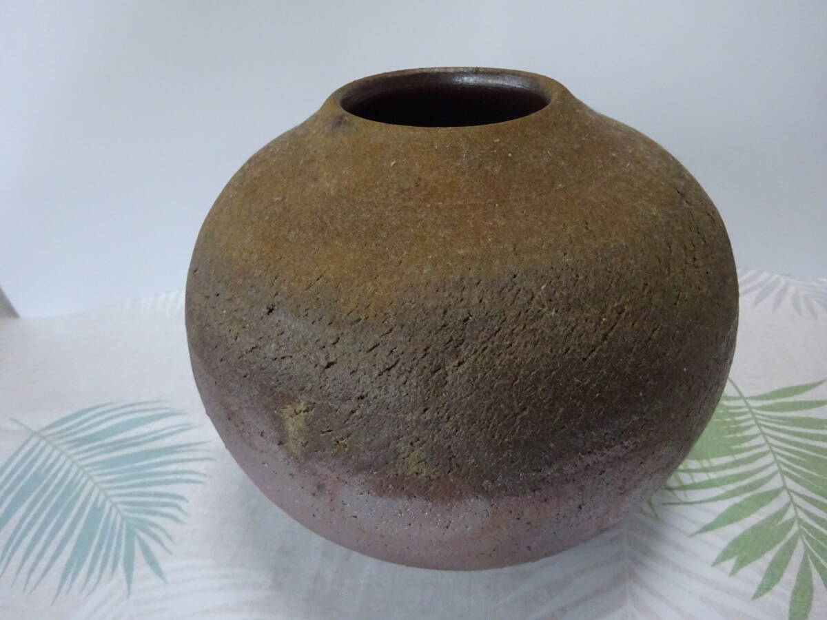 - 備前焼 人気実力作家 見附文雄(師:県重要無形文化財藤原建)★備前黄ゴマ大壺 紙箱付 花器 茶碗 壺 茶道具