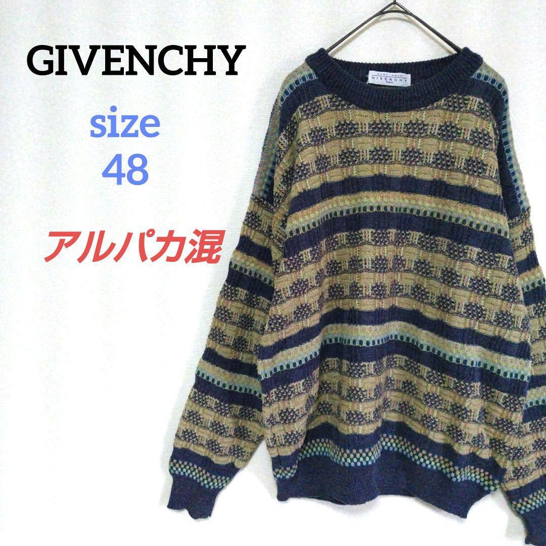 > Gentleman GIVENCHY ジバンシー アルパカ混ニット セーター マルチカラー 総柄 イタリア製 リブ ウール プルオーバー 48