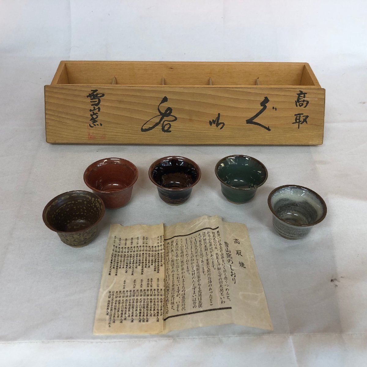 高取焼 木箱付き ぐい呑み柄違い5個セット (063102)拍卖