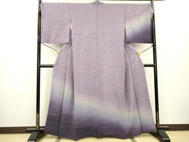 > 平和屋着物▼訪問着 ふくれ織 霞文 暈し染 銀通し地 正絹 逸品 DAAW3233fe