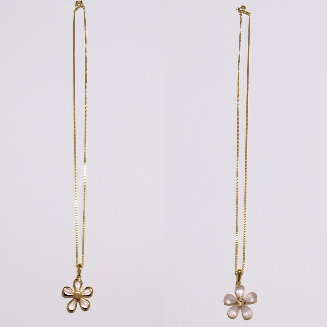 - 新品 未使用 2way ネックレス 花柄 ピンク ゴールド フラワー