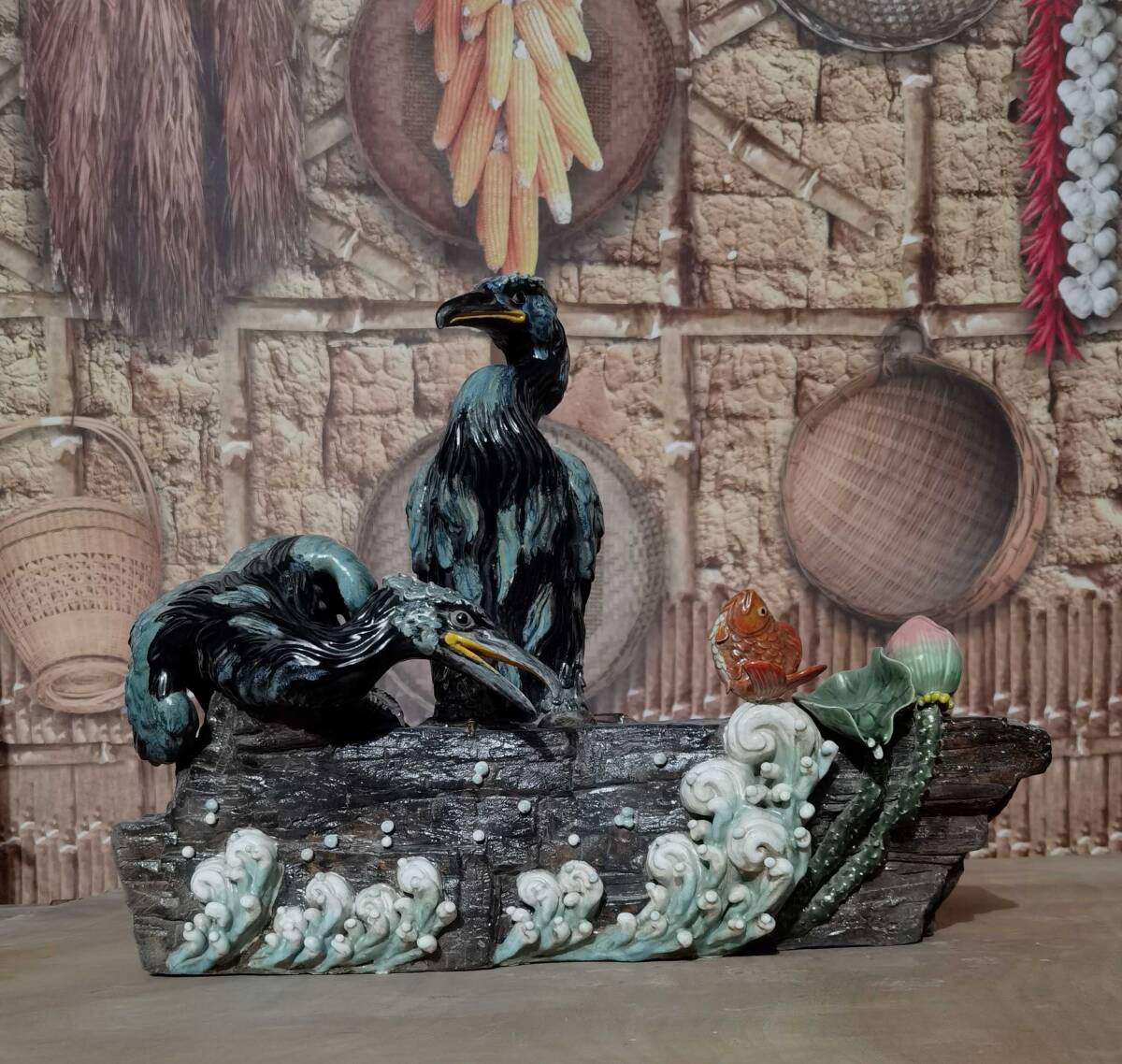- 『館蔵珍品 古陶瓷品 石灣窯 勝券在握 魚鷹』置物 賞物 貴重物品 収蔵品 中国古美術