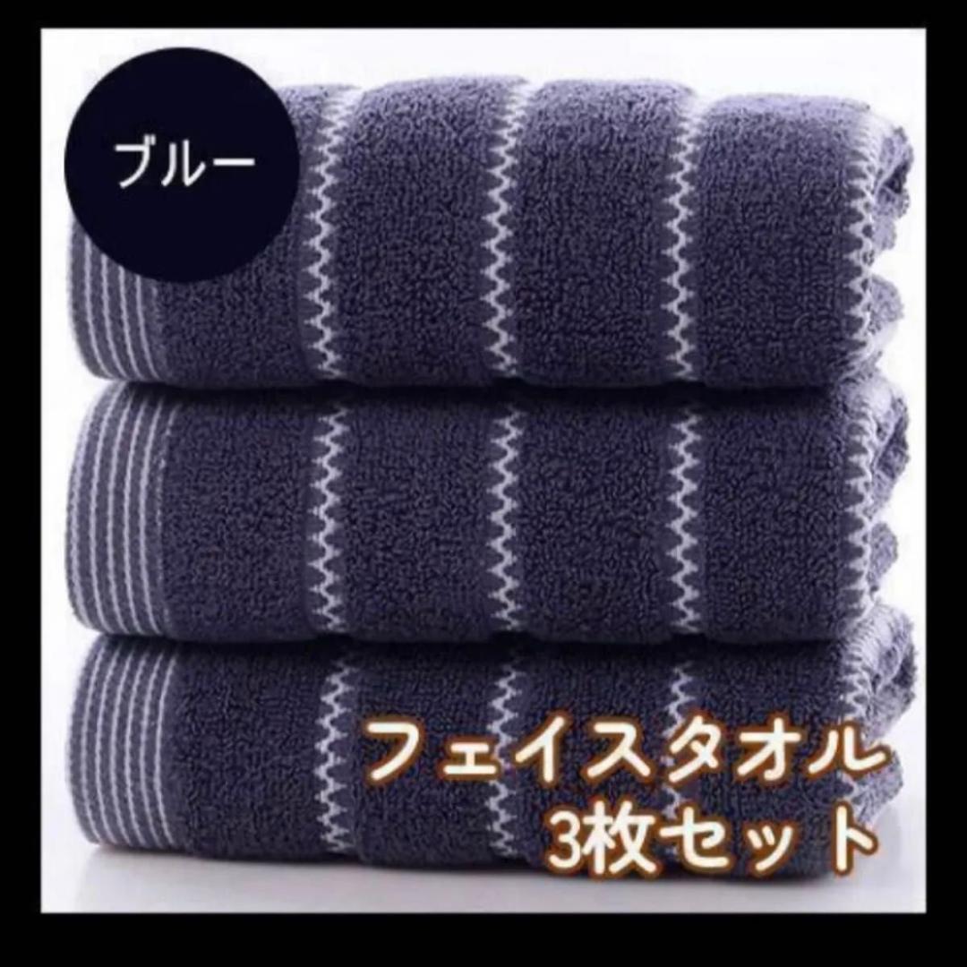 - ブルー フェイスタオル 3枚セット ボーダー ふわふわ 来客 お得 波ボーダー