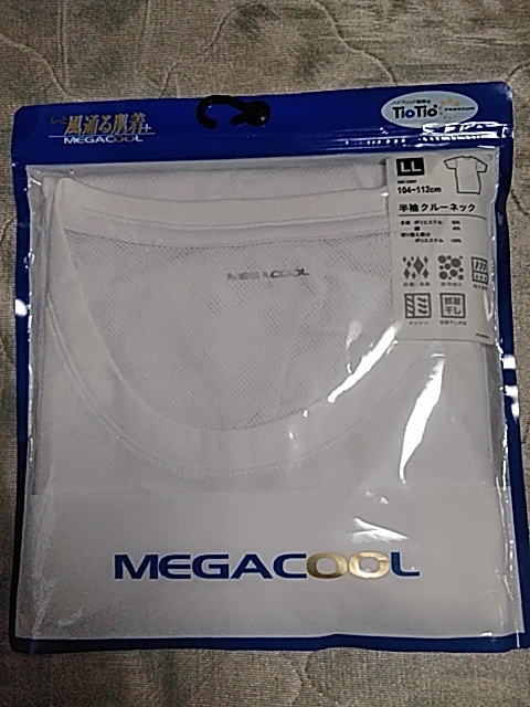> 新品未開封品 MEGA COOL 半袖 クルーネック 肌着 LL XL インナー 紳士 ホワイト 抗菌 消臭 防汚加工 吸汗 速乾 メッシュ素材 未使用品