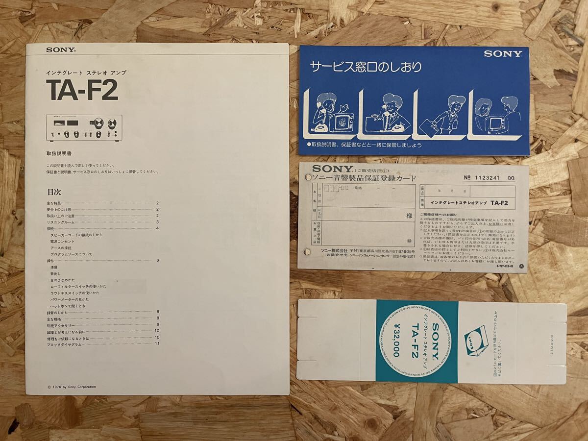 - 【押入整理】ソニー SONY オーディオ 取扱説明書・保証書・値札【TA-F2 ステレオアンプ】送料180円