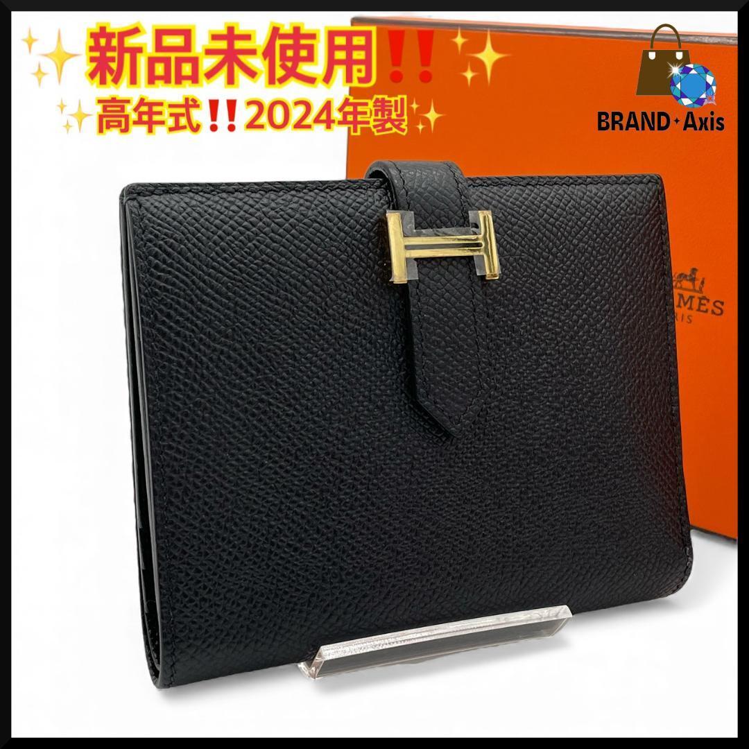 > ★【新品未使用!!/2024年製】エルメス HERMES ヴォーエプソン ベアン コンパクト 二つ折り財布 ブラック W刻印 レディース メンズ★