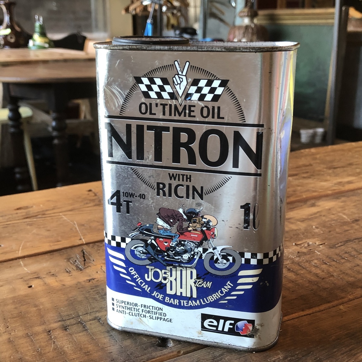 シルバーカラーをベースにNITRONの文字とイラストの、elfオイルの未開封の商品です。