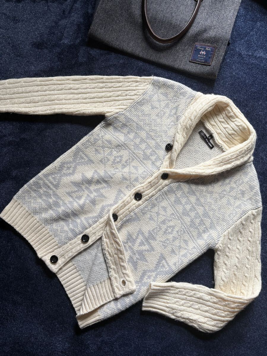 > 超美品 新品同様 テットオム Blаck on TETE HOMME 高品質ウール素材 ショールカラー 厚手ケーブル編み カーディガン ジャケット size2(M)