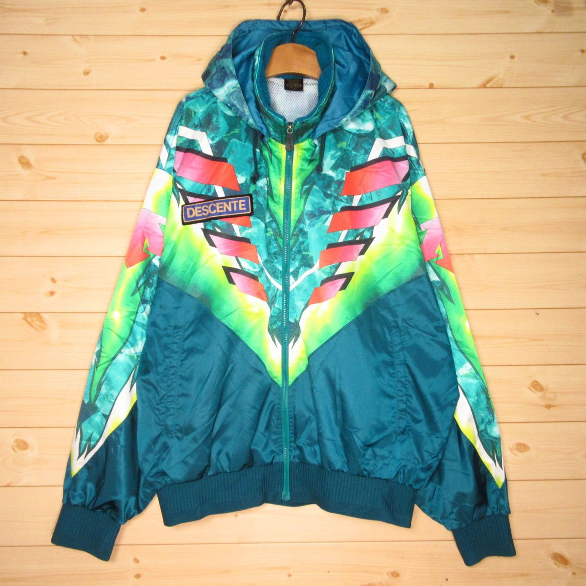 > ◎美品 90s!DESCENTE デサント ウィンドブレーカー 裏メッシュ ジャケット レトロ ヴィンテージ 90年代 メンズ 緑 XLサイズ◆AA4634