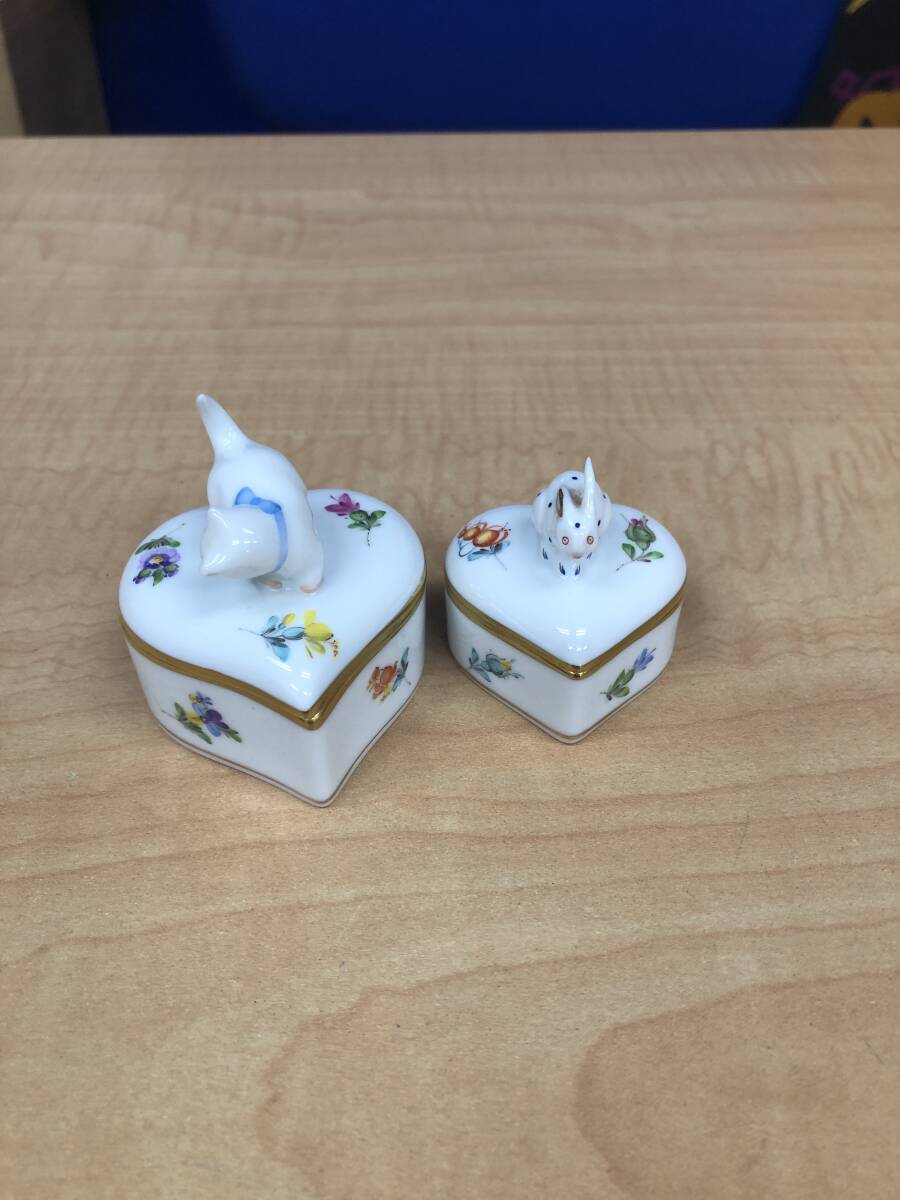 - Herend ヘレンド ミルフルール ハートボックス ネコちゃん うさぎさん 小物入れ ジュエリーボックス 2点 中古品
