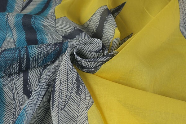 > ◆インポート特集◆miroglioイタリア製コットンシルクフェザープリント羽1.5m柄 黄色 巾:145cm♪3パネル4.5m[8668]54P
