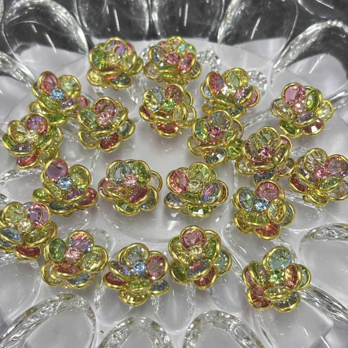 - L495☆未使用 約53g 大量 SWAROVSKI スワロフスキー 円 パーツ 花 フラワー 15mm ゴールド ゴールド×ピンク 緑 青 ヴィンテージ B-485