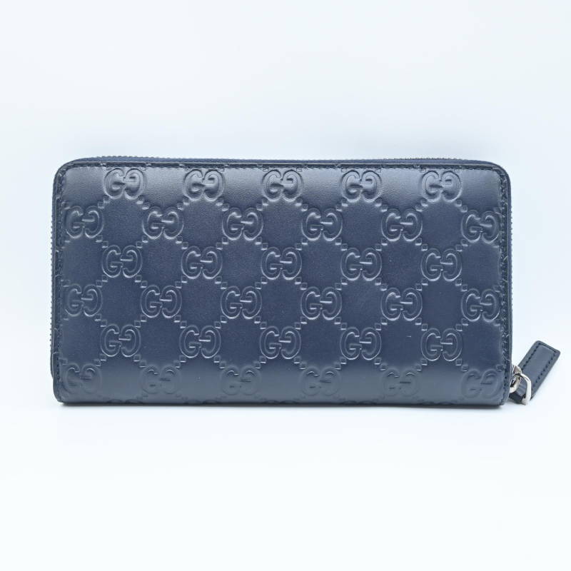 - GUCCI グッチ グッチシマ レザー ラウンドファスナー 長財布 307987・525040 ネイビー M09-k002