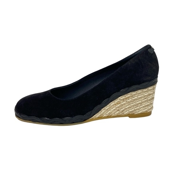 > サルバトーレフェラガモ FERRAGAMO/SalvatoreFerragamo パンプス 8 D - リネン、レザー 黒×ベージュ レディース ウェッジソール/ヴァラ 靴