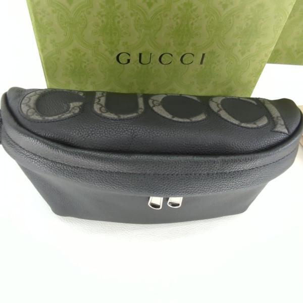 > グッチ GGスプリーム 768111 ウエストバッグ レザー ブラックxグレー GUCCI ボディバッグ ◆2004