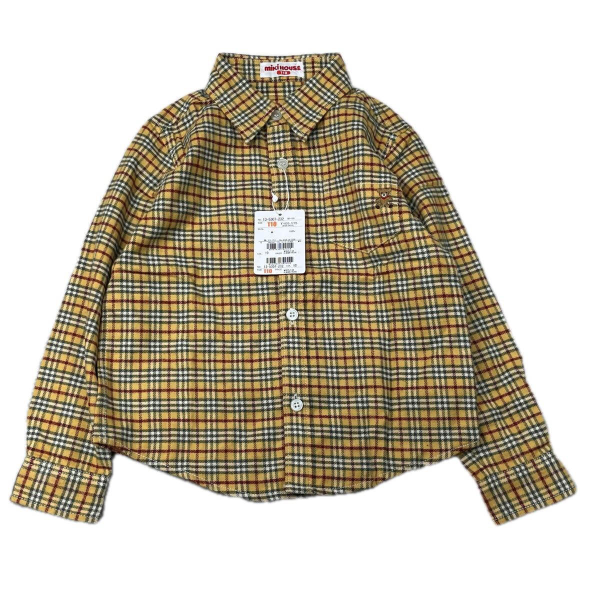 > 新品タグ付き MIKIHOUSE ミキハウス キッズ 110 チェック ネルシャツ イエロー 男の子 女の子 長袖シャツ